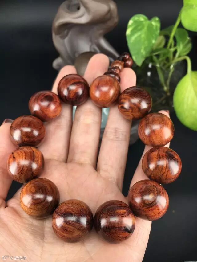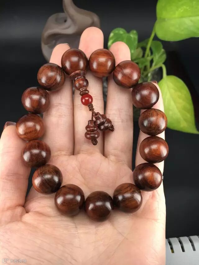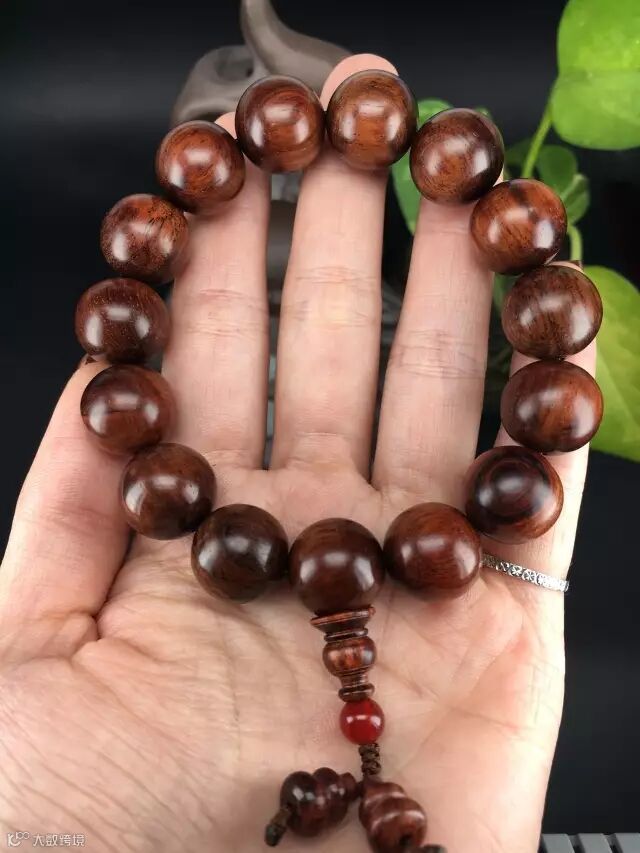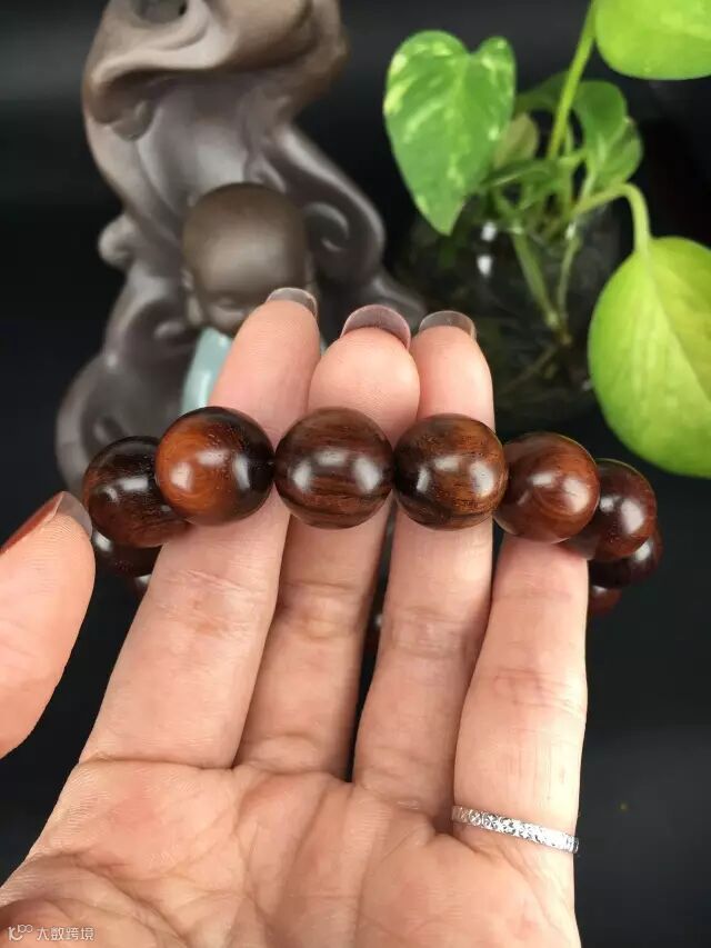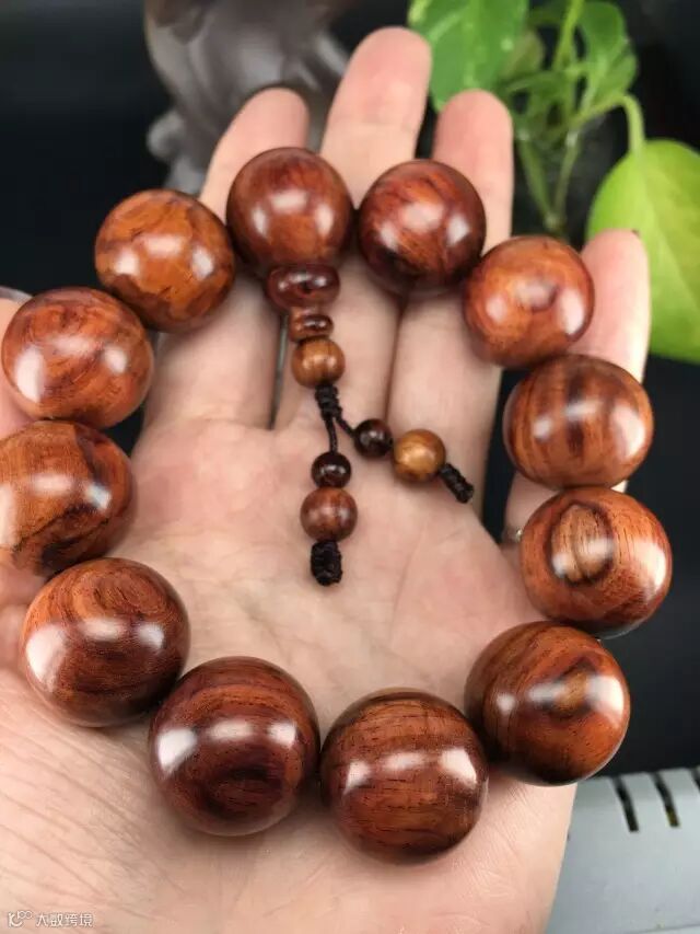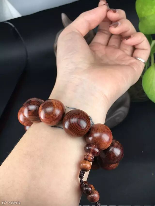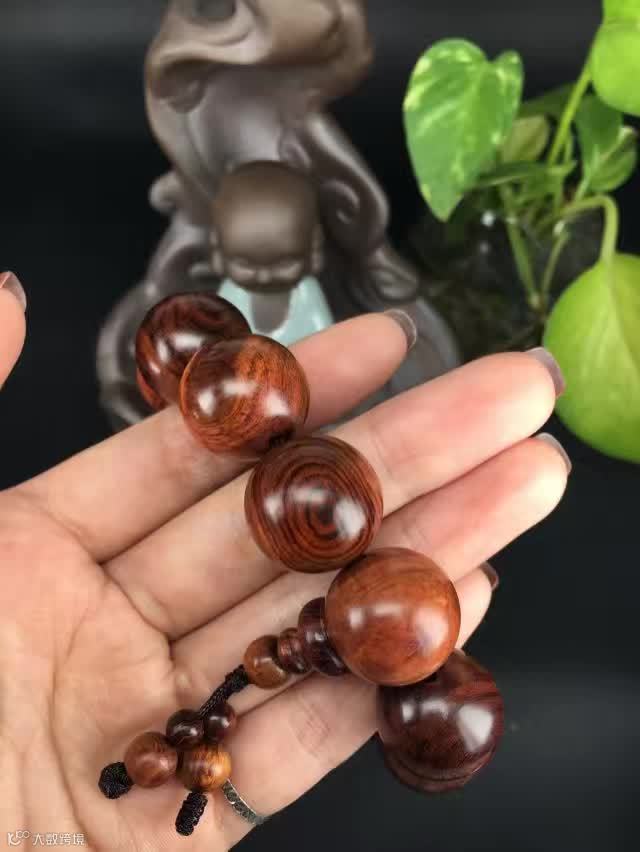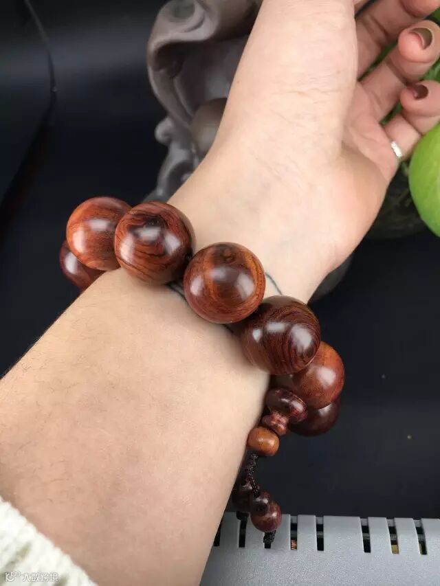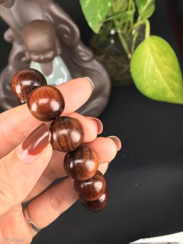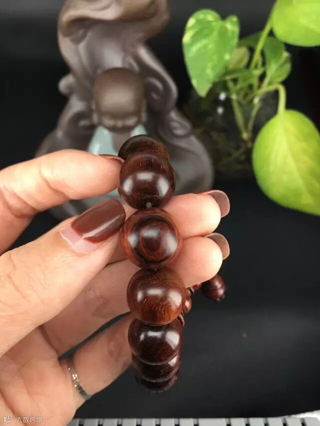 在自然光下,整串珠子呈现自然的褐色(夹一点紫),通透自然,古典尊贵。1.5的珠子木质坚实,适合佩戴,可自己佩戴也可送女朋友哦!