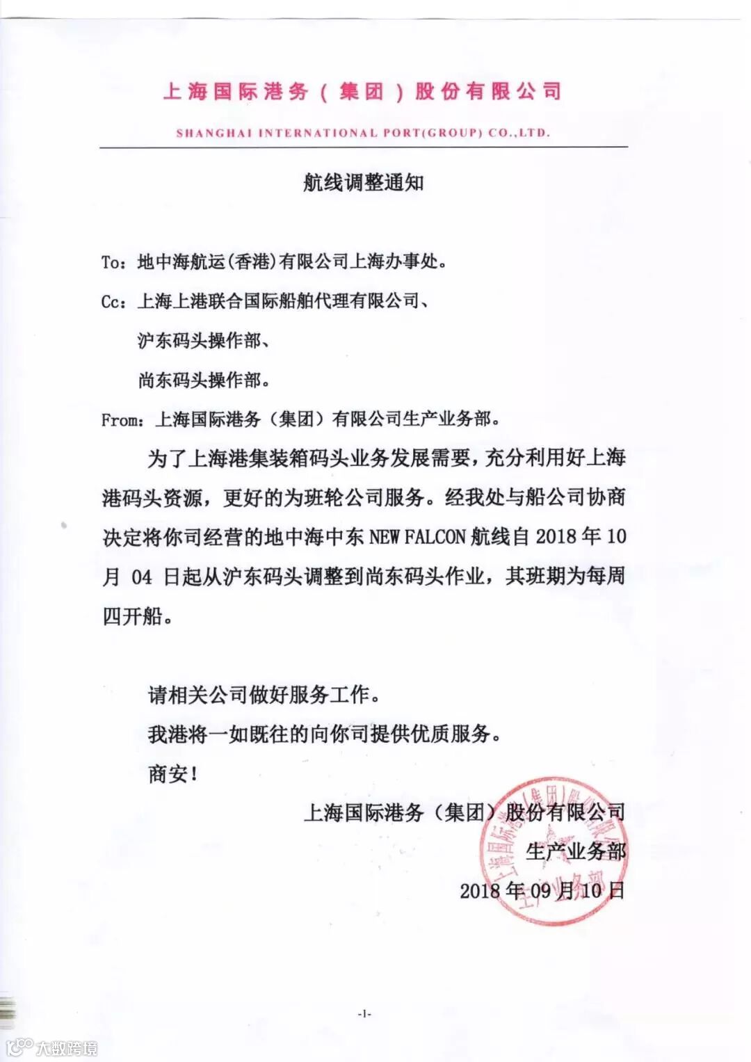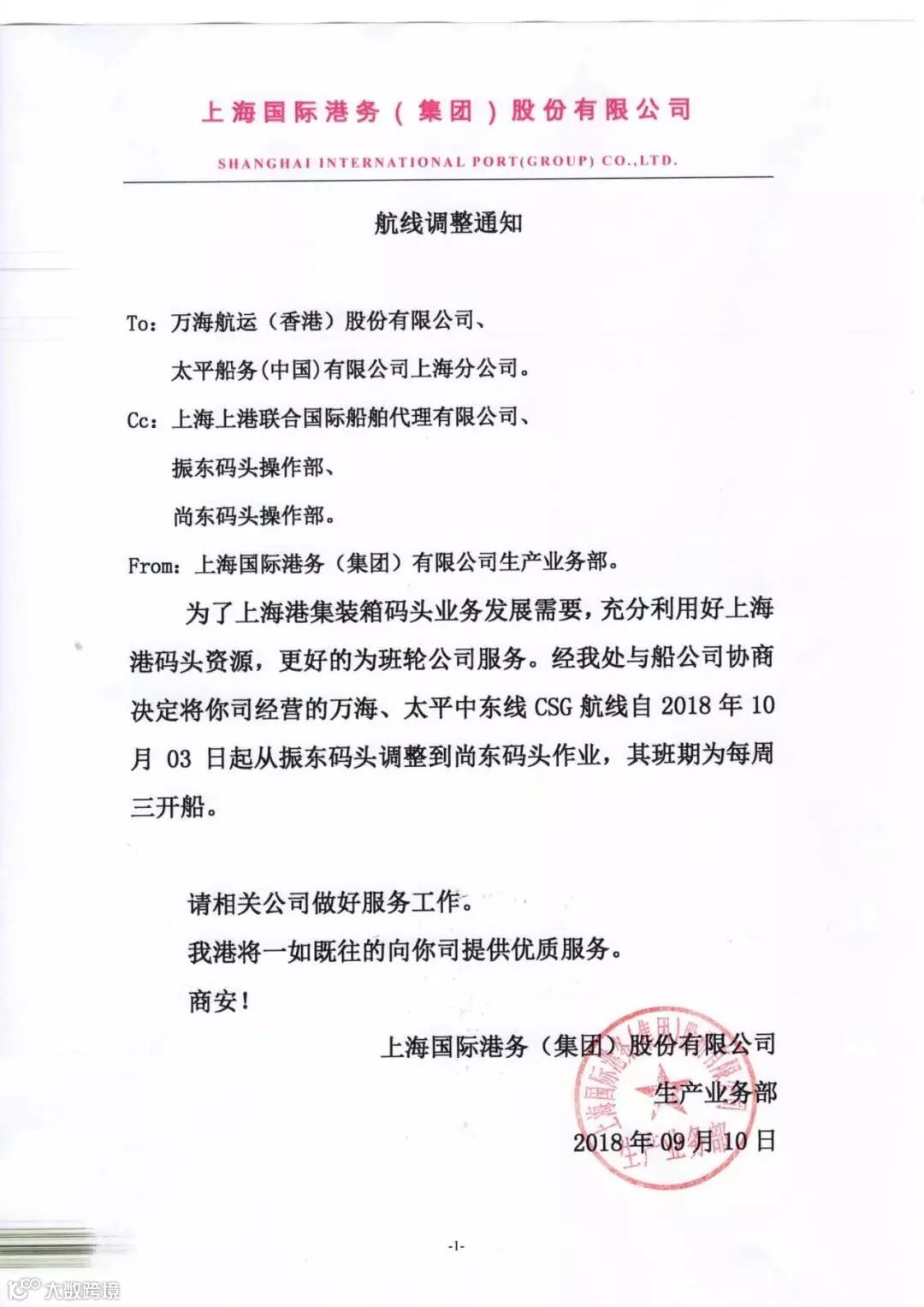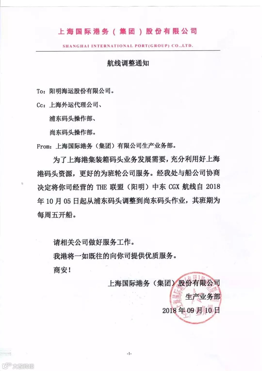 9月10日,上港集团生产营业部发布通知:从10月3日起,调整部分航线的作业码头,此次调整涉及三大联盟多家船公司。