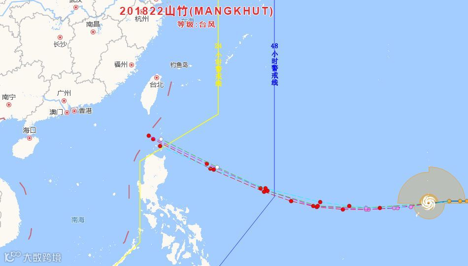 据中央气象台预报,今年第22号台风“山竹”(MANGKHUT)的中心今天上午8点钟位于美国关岛以东大约330公里的西北太平洋洋面上,中心附近最大风力有13级(38米/秒)。预计,“山竹”将以每小时30公里左右的速度向偏西方向移动,强度继续加强,最强可达超强台风级(18级以上,62-68米/秒)。预计9月14日白天将移动到菲律宾东部海域,随后它将有极大可能登陆我国华南区域!