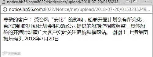 上海方面,振东码头发出通知,受台风安比影响,船舶开靠计划将进行调整,请大家务必注意!