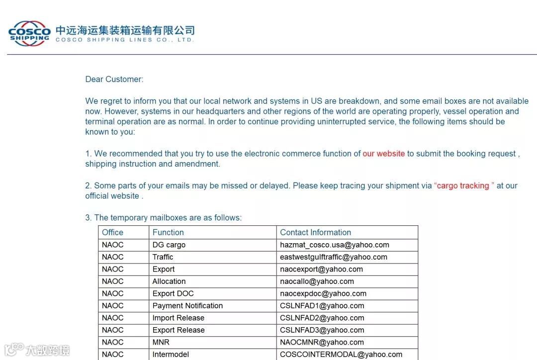 不过据悉,中远海运总部及全球其它地区的系统正常运行,所有船舶照常运营。