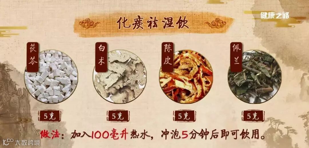 痰湿的根本是脾虚。茯苓、白术健脾,陈皮和佩兰祛湿,如果您有肥胖、舌苔厚腻、大便黏腻的痰湿症状,可以利用这个小方子自行调理。