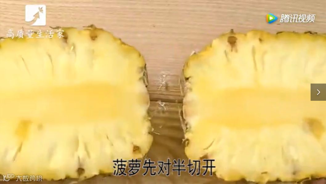 菠萝先对半切开。