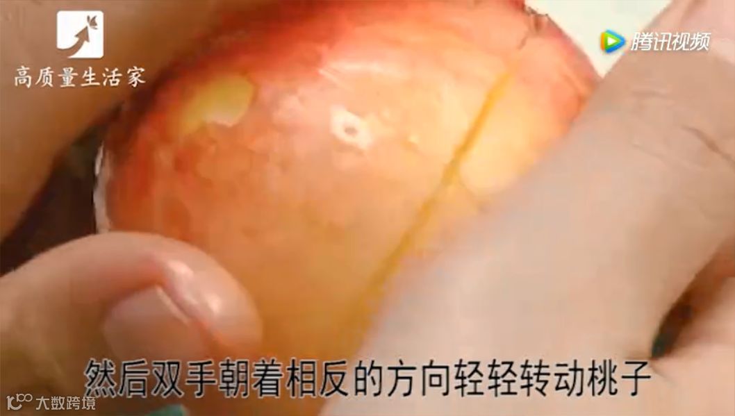 双手朝着相反的方向轻轻转动桃子。