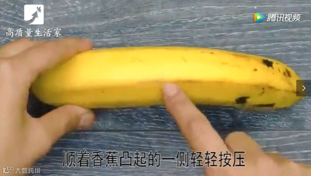 顺着香蕉凸起的一侧轻轻按压。