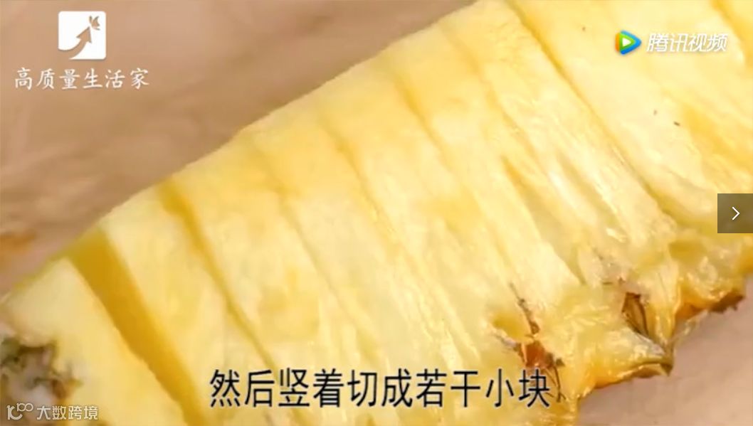 先贴着菠萝皮横着切开。