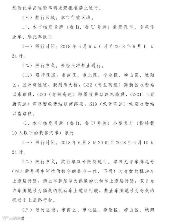 2018年6月1日0时至2018年6月6日24时,禁止成品油船、化学品船、液化石油气船、固体散装危险货物船(煤炭船舶除外)以及载运危险货物的杂货船进出青岛胶州湾海域;