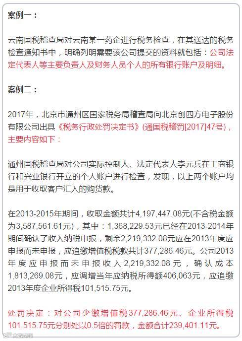 都是惨痛教训啊!老板们,不要再认为个人账户最安全,可以隐藏公司收入,逃避公司应缴纳的税款。税务稽查,不仅要查公司的账户,还要查公司法定代表人或实际控制人或主要负责人的个人账户!