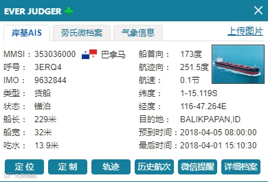 散货船“EVER JUDGER”建造于2014年,巴拿马旗,长229米,宽32米,载重吨为82000吨。