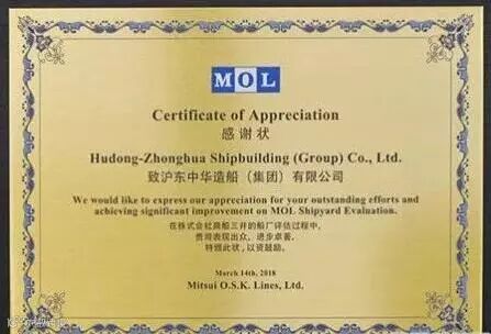 3月14日,商船三井赠送沪东中华感谢状,赞美沪东中华为商船三井提升国际竞争力所作的突出贡献。