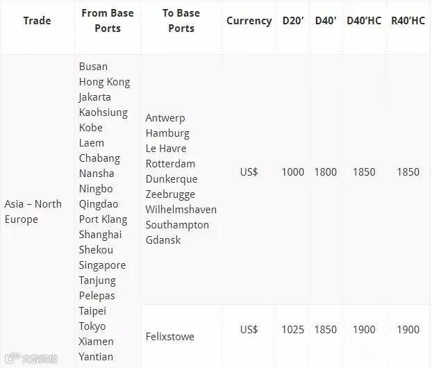 FAK基本海运费价格包含燃油调整系数,费率不包括并受其他与燃油有关的费用、码头装卸费(产地/目的地)、旺季附加费、安全相关附加费,以及其他类似的费用。在某些情况下,上述一个或几个项目的数量为零时,其他费用,如应急费用和当地费用也可适用。所有的港口都将受到附加组件的影响。