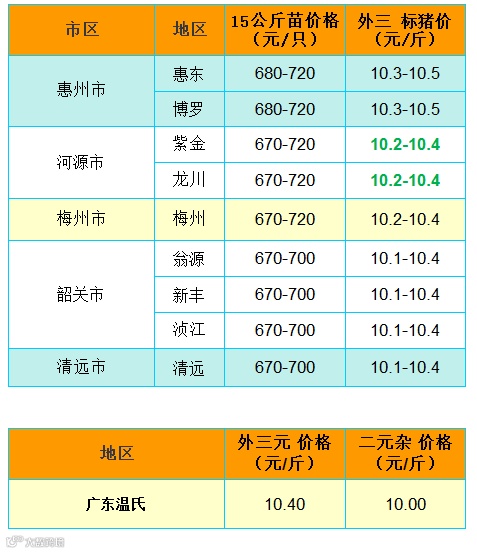 备注:猪价为喂湿料猪至喂干料猪出栏价格;