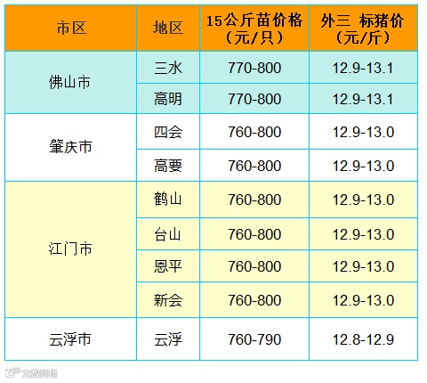 备注:猪价为喂湿料猪至喂干料猪出栏价格;