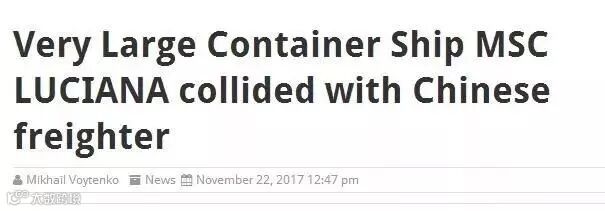 11月21日凌晨3时30分,在天津港附近,MSC旗下一艘11312TEU大型集装箱船“MSC LUCIANA”与中国货船苏联海机0118在渤海海域相撞。事故直接造成“苏连海机0118”轮右舷中部破损,严重进水,随船16名船员处境危险。