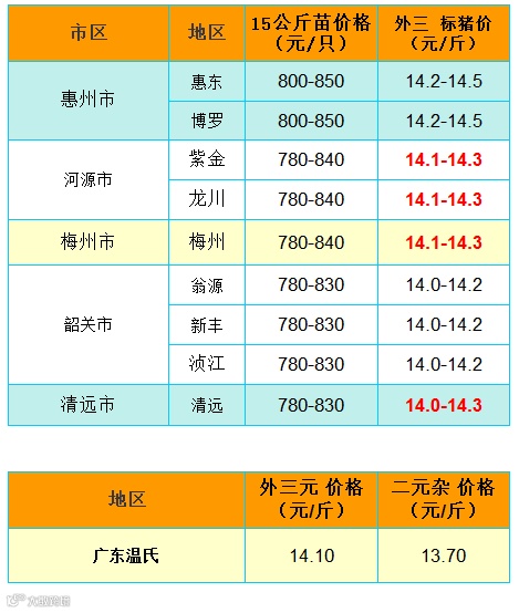 备注:猪价为喂湿料猪至喂干料猪出栏价格;