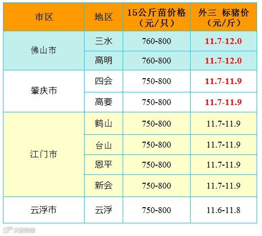 有红绿颜色部分是相对昨天有所变动的猪价;