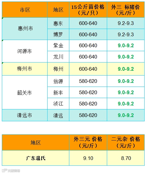 备注:猪价为喂湿料猪至喂干料猪出栏价格;