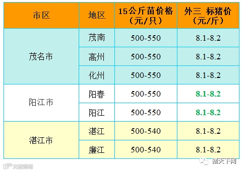 有红绿颜色部分是相对昨天有所变动的猪价;