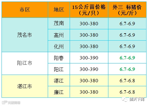 有红绿颜色部分是相对昨天有所变动的猪价;