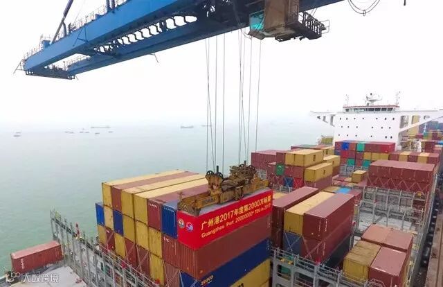 2017年12月28日,广州港集装箱2017年度吞吐量当日突破2000万标准箱,同样跻身全球超大型港口。