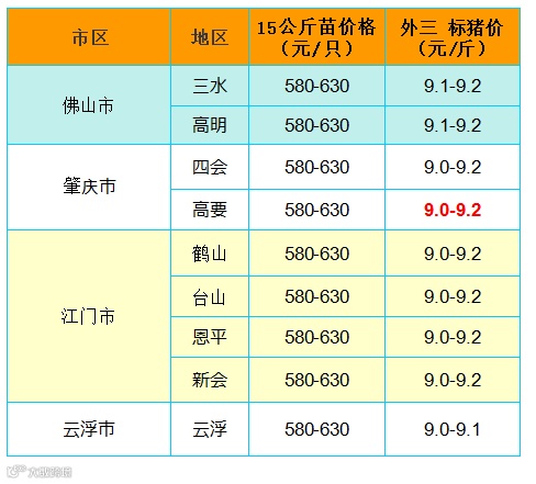 备注:猪价为喂湿料猪至喂干料猪出栏价格;
