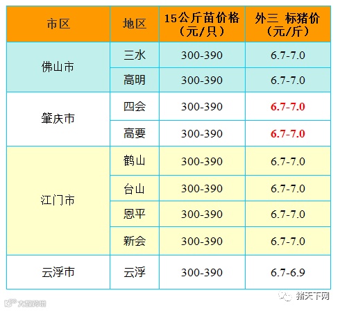 有红绿颜色部分是相对昨天有所变动的猪价;