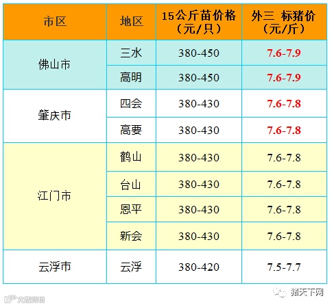 有红绿颜色部分是相对昨天有所变动的猪价;