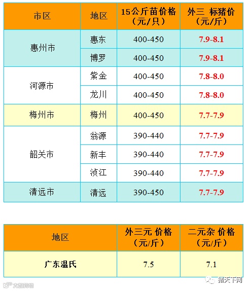 有红绿颜色部分是相对昨天有所变动的猪价;