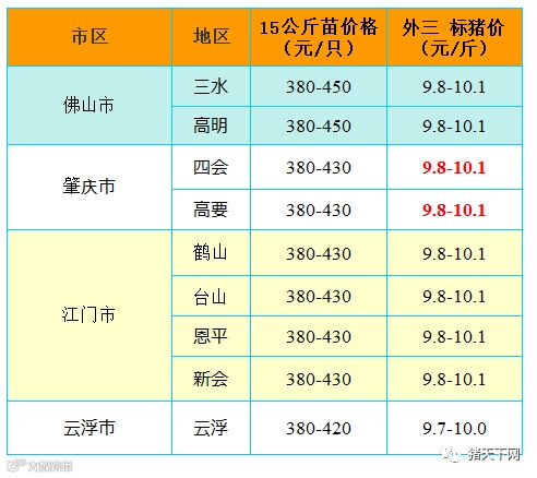 有红绿颜色部分是相对昨天有所变动的猪价;