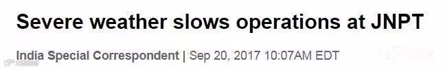 JNPT港口工作人员表示,受暴雨影响JNPT港口业务操作至少延迟了10小时,造成多艘船只延误。