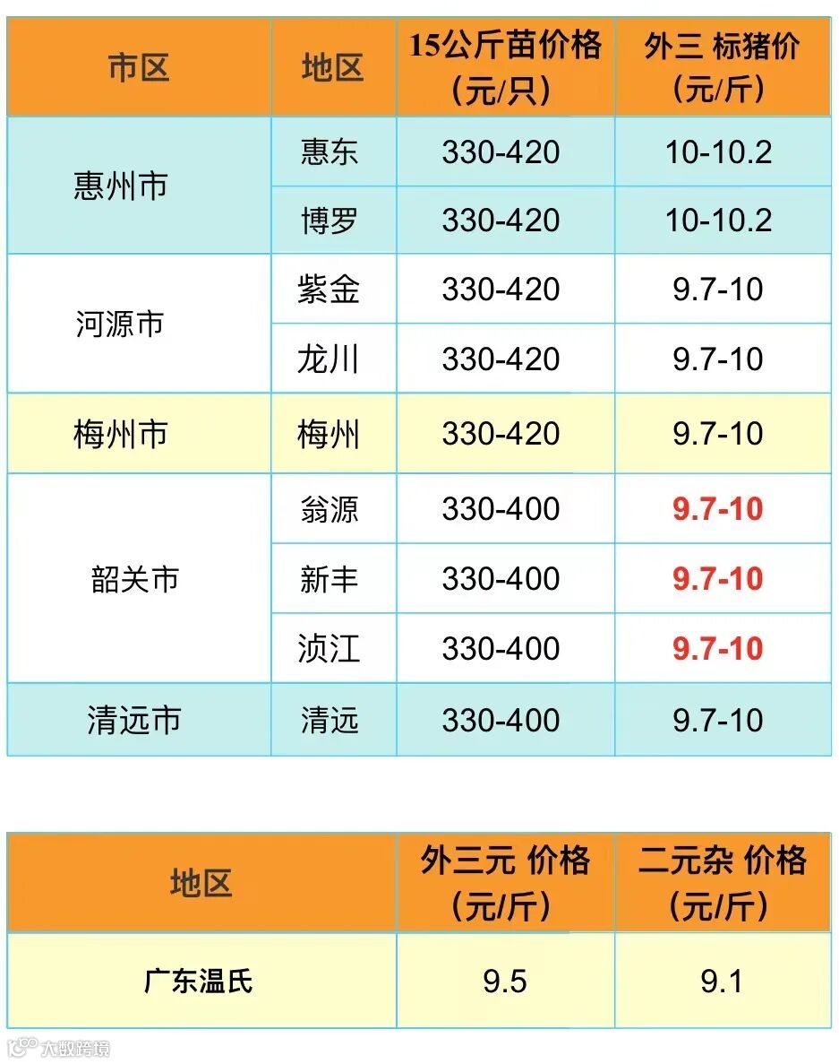 备注:猪价为喂湿料猪至喂干料猪出栏价格;
