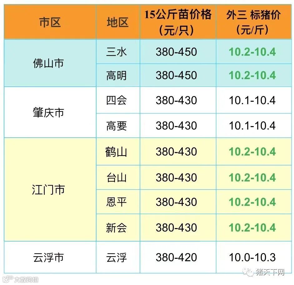 有红绿颜色部分是相对昨天有所变动的猪价;