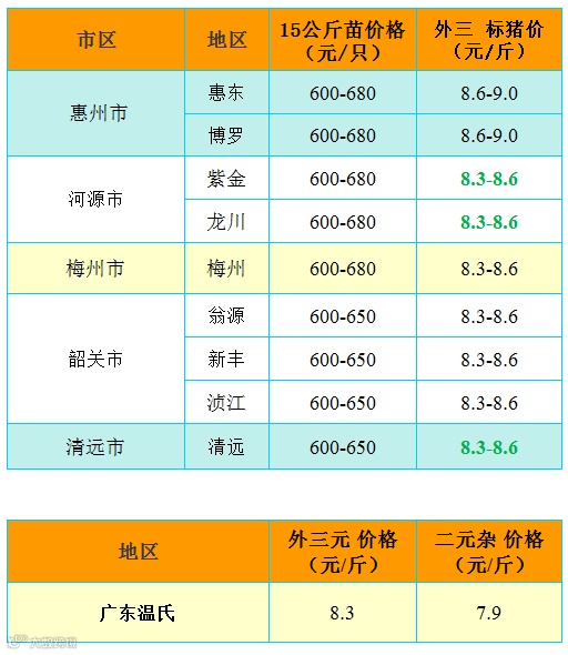 备注:猪价为喂湿料猪至喂干料猪出栏价格;