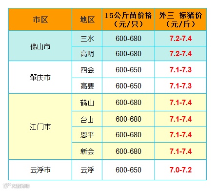备注:猪价为喂湿料猪至喂干料猪出栏价格;