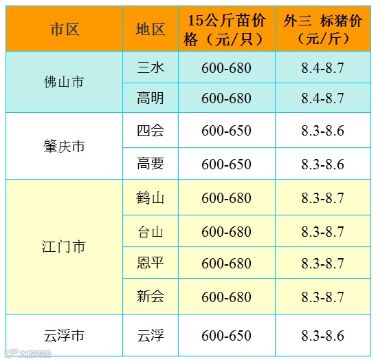 备注:猪价为喂湿料猪至喂干料猪出栏价格;