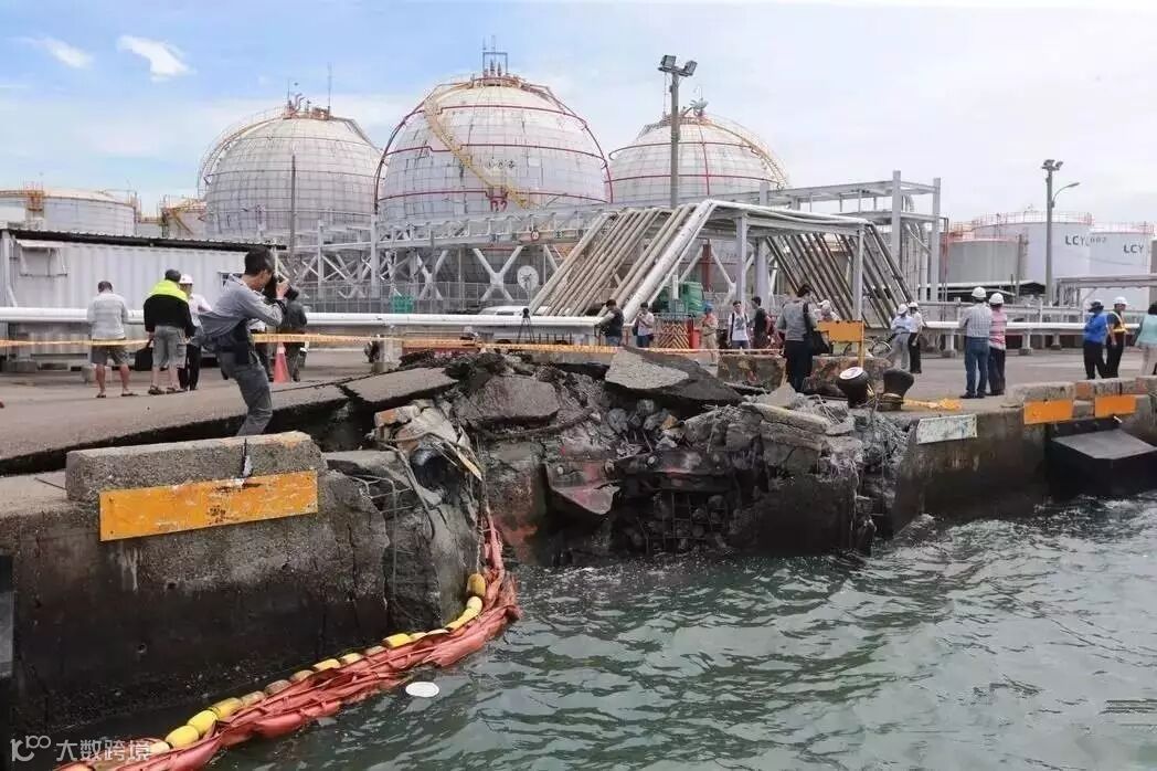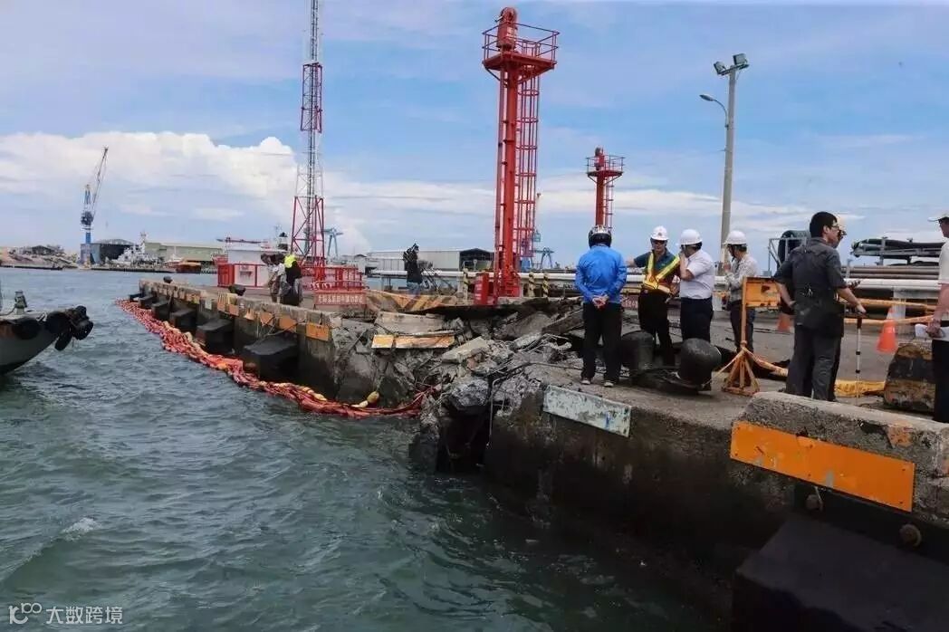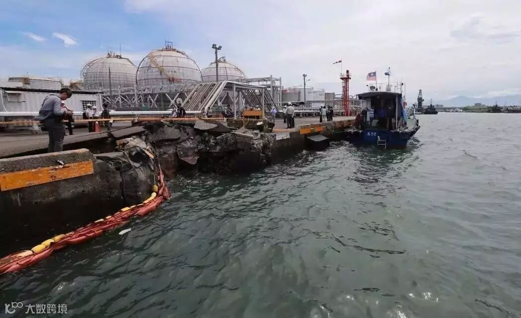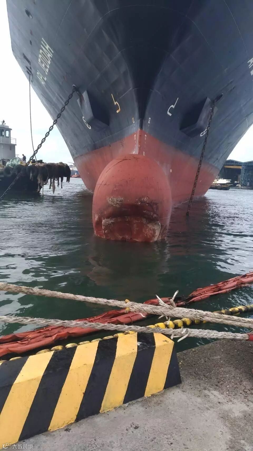 刚刚,APL JEDDAH出港前撞击高雄港58号码头,码头及船首严重受损,码头还严重凹陷无法使用,高雄港务分公司已派员抢修,由于码头旁边就是石化专区码头,所幸没有造成管线受损气体外泄。