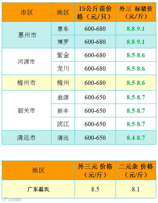 备注:猪价为喂湿料猪至喂干料猪出栏价格;