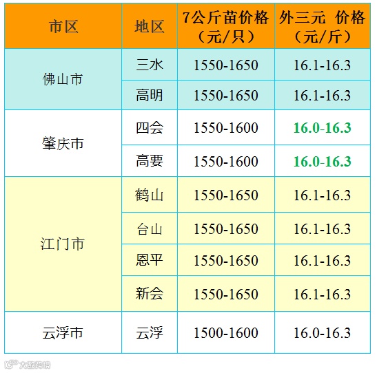 有红绿颜色部分是相对昨天有所变动的猪价;