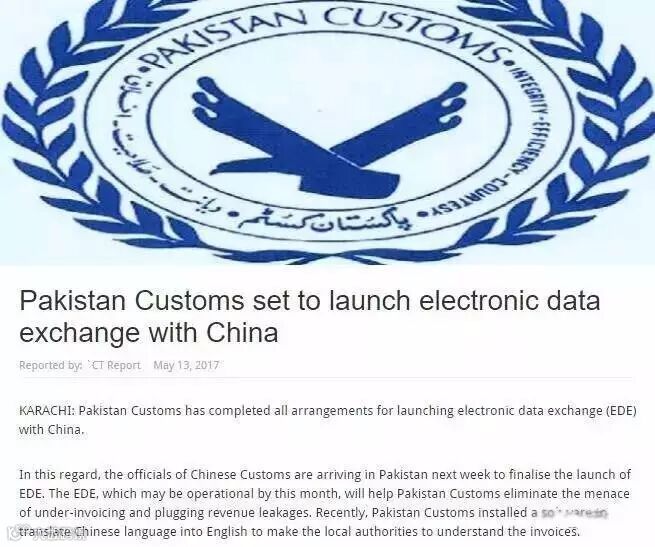 据巴基斯坦本地媒体THE NEWS在5月初报道,巴基斯坦海关官员于5月4日表示,目前巴基斯坦海关已经完成电子数据交换(EDE)的全部准备工作,将于本月底正式启动,与中国海关协作打击低报出口、逃漏税收等行为。