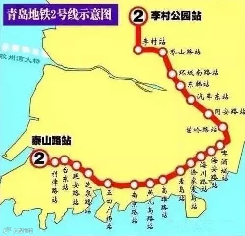 即将试运行的2号线东段,从芝泉路开始,在五四广场和地铁3号线实现换乘,然后一路沿着美丽的海岸线向东,穿过青大海大,穿过豪宅林立的崂山前海一线,再一路向北延伸越过东李,在李村站再次和地铁3号线实现换乘。