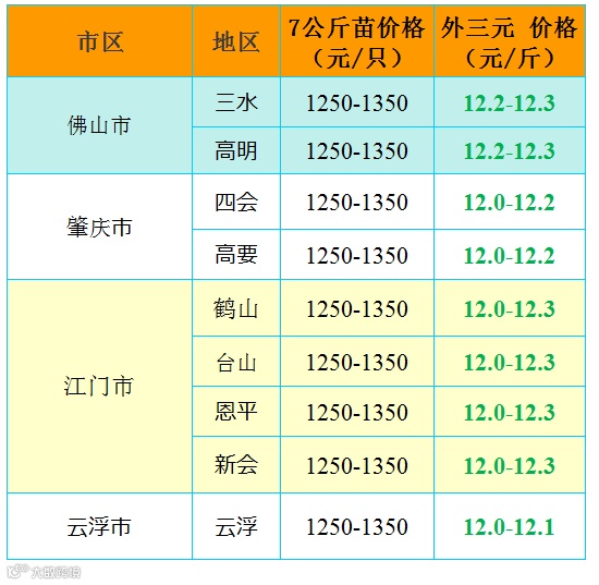 有红绿颜色部分是相对昨天有所变动的猪价;
