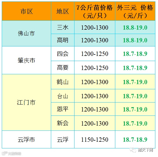 有红绿颜色部分是相对昨天有所变动的猪价;