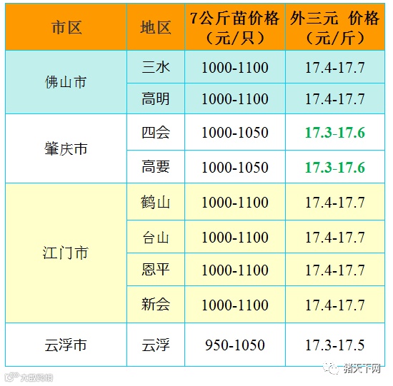 有红绿颜色部分是相对昨天有所变动的猪价;