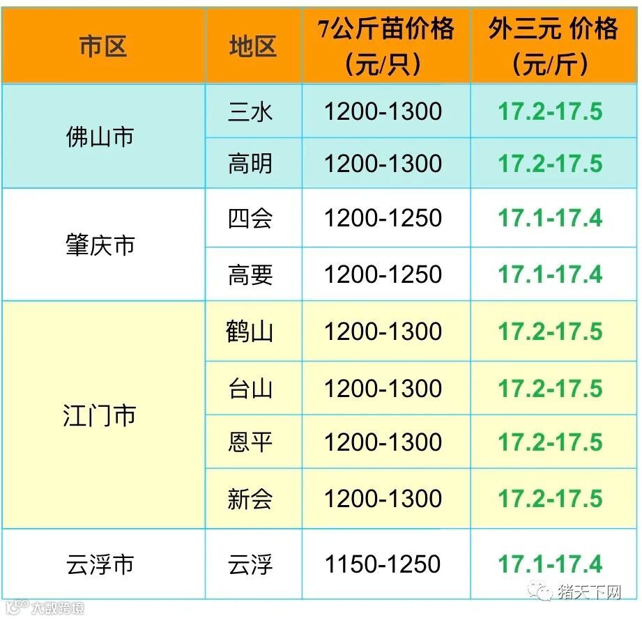 有红绿颜色部分是相对昨天有所变动的猪价;