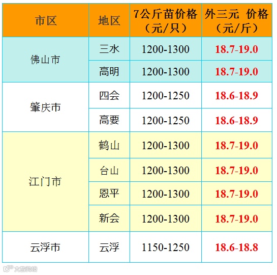 有红绿颜色部分是相对昨天有所变动的猪价;