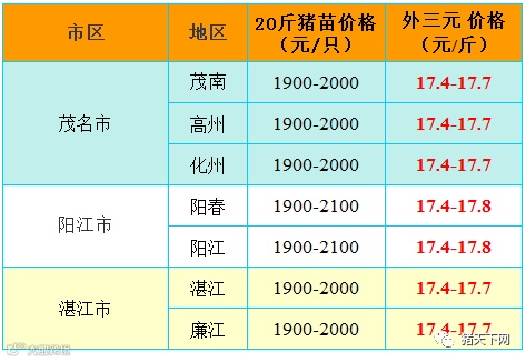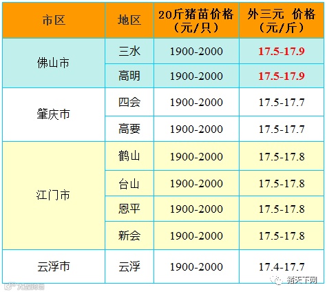 有红绿颜色部分是相对昨天有所变动的猪价;