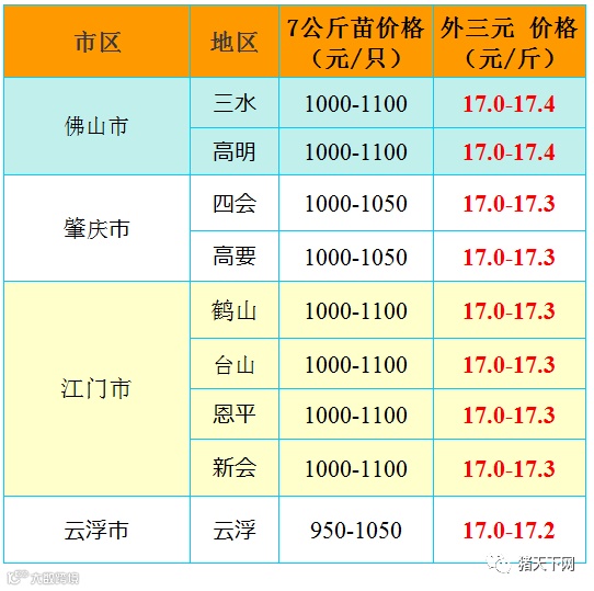 有红绿颜色部分是相对昨天有所变动的猪价;