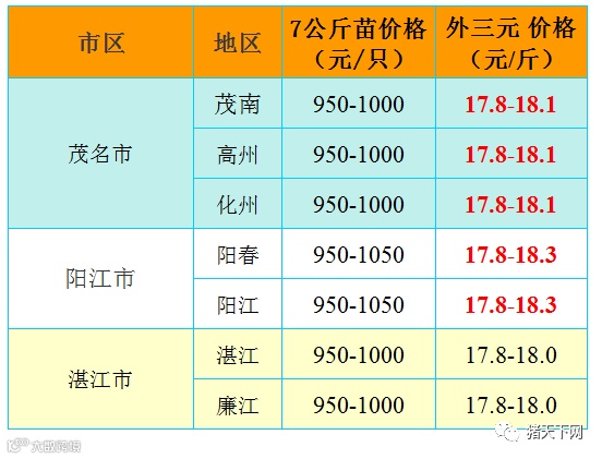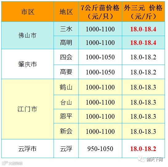 有红绿颜色部分是相对昨天有所变动的猪价;