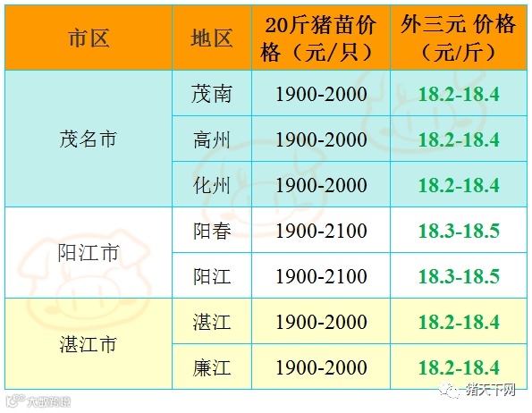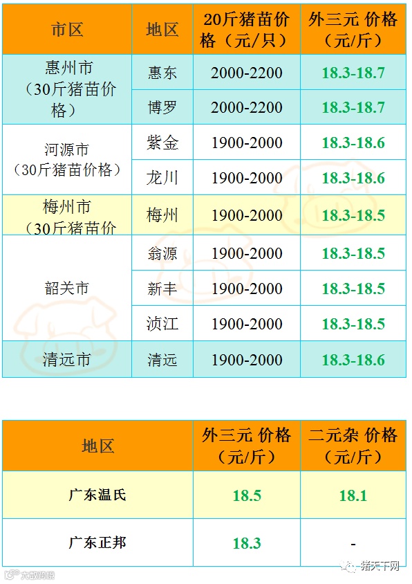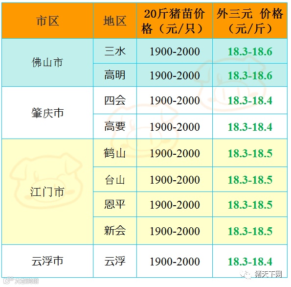 有红绿颜色部分是相对昨天有所变动的猪价;
