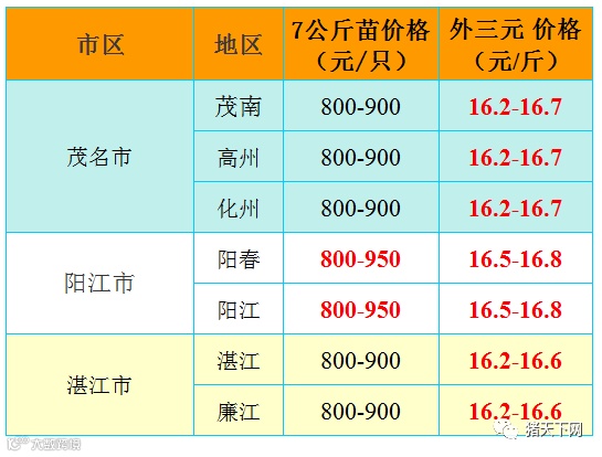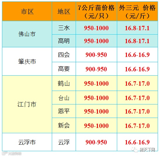 有红绿颜色部分是相对昨天有所变动的猪价;